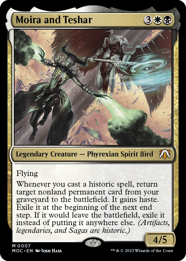 Whenever you cast a historic spell, return target nonland permanent card from your graveyard to the battlefield. It gains haste. Exile it at the beginning of the next end step. If it would leave the battlefield, exile it instead of putting it anywhere else. (Artifacts, legendaries, and Sagas are historic.)